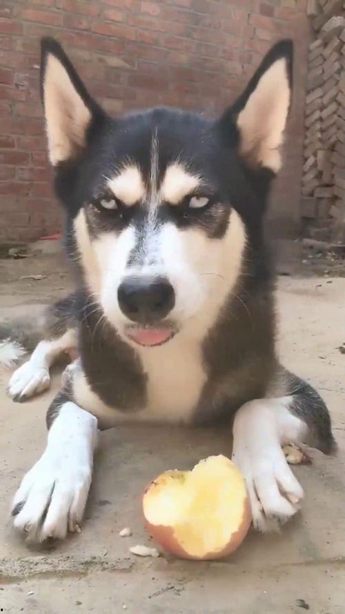 哈士奇吃瓜,萌态十足
